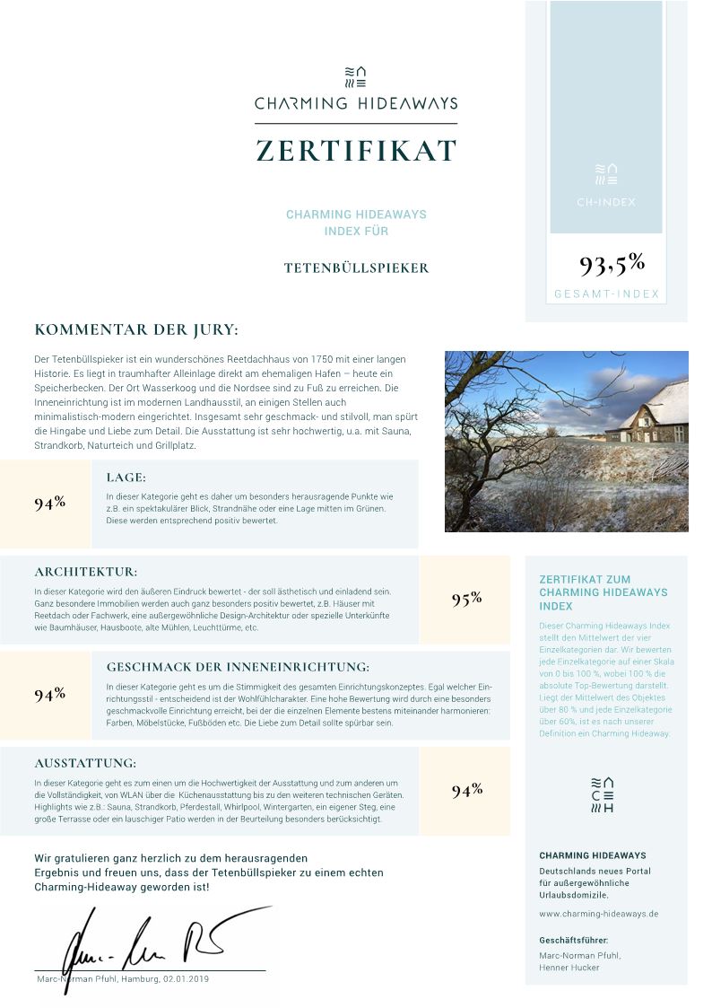 Das wichtigste Lob für uns, die wir diesen Ort vor einigen Jahren entdeckt und vor dem Verfall gerettet haben, sind die strahlenden Augen unserer Gäste: Die meisten kommen immer wieder, alle bemerken die vielen kleinen Details, auf die wir Wert legen - von toller Bettwäsche über Schafsmilchseifen oder hausgemachte Marmeladen bis zu den Äpfeln, die sich unsere Gäste im Herbst von unseren vielen alten Obstbäumen pflücken können. Für uns ist der Tetenbüllspieker der schönste Ort der Welt - und wann immer wir nicht da sein können, haben wir Sehnsucht und Heimweh. Offenbar haben wir unsere Gäste von dem Haus und der Landschaft überzeugen können - mit vielen haben wir das ganze Jahr über Kontakt, besprechen die nächste Anreise - denn fast alle kommen wieder - kochen gemeinsam, feiern im Garten mit Schweizer Gästen den Schweizer Nationalfeiertag, machen Radtouren und Strandwanderungen, Geburtstagsfeiern, Hochzeiten oder Grillfeste und Lagerfeuer unten im Garten.