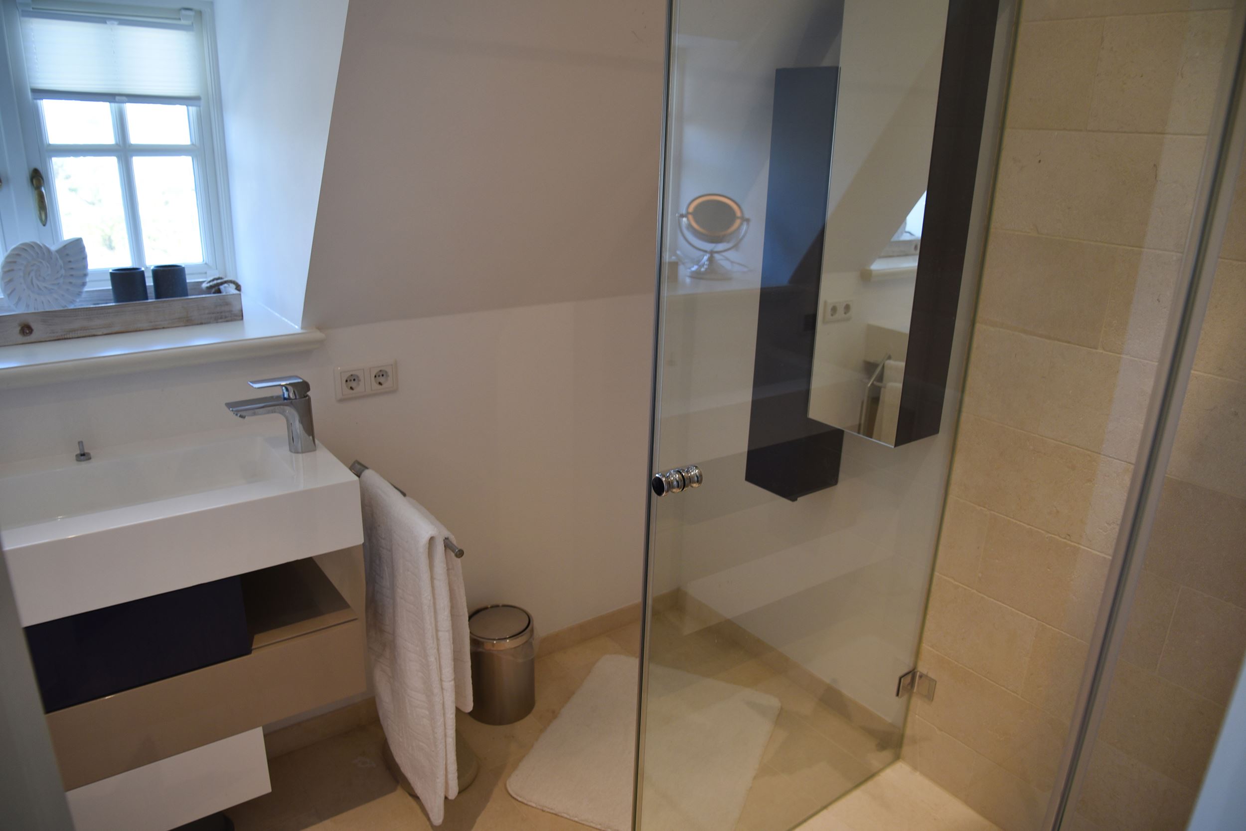 Im EG finden Sie eine gemütliche Sitzgarnitur mit TV, einen großzügigen Esstisch mit Sitzbank und Stühlen für eine gemütliche Runde von bis zu 5 Personen oder mit 2 Kindern bis 12 Jahren also 6 Persone, sowie einen antiken Kachelofen für wohlige Wärme in der kalten Jahreszeit. Im Küchenbereich eine Siematic- Einbauküche mit Spülmaschine, Kühl-Gefrierkombination, Induktions-Kochfeld, Backofen und Dunstabzugshaube. Weiter befindet sich im EG ein Gäste-WC. Ein Schlafraum im OG mit TV und Bett in Überlänge und hoher Decke, ein Schlafraum im OG mit TV und 140 cm breitem Bett und hoher Decke. Bad mit Dusche und WC im OG. Im UG befindet sich ein weiterer Doppelschlafraum mit 180×200 cm großem Bett und ein Bad mit Dusch und WC, des Weiteren finden Sie im UG eine Sauna und einer großzügigen Wanne für die Erholung nach dem Strandbesuch oder an kalten Tagen. Wasch-Trockner im UG. .
