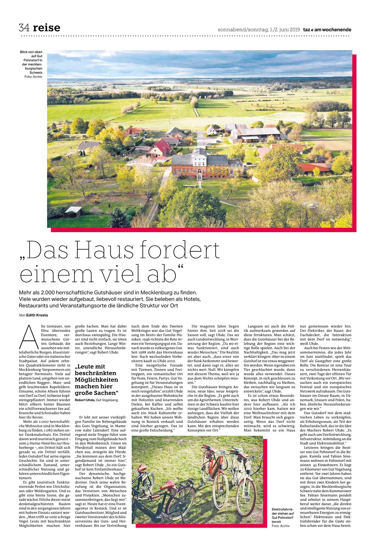 Ende 2017 dann eine beiläufige Bemerkung über ein Gutshaus, das zum Verkauf steht, der Gedanke „Nur mal anschauen…“, dann das Wissen: „Hier gehören wir hin!“ Es ging alles ganz schnell: Vier Monate und ein gekündigter Job später standen wir als Eigentümer im Gutshaus. Nun Gastgeber mit Eigentum und (Elektro-)Auto. Unser größtes Abenteuer. Wir dürfen leben, wo Sie Urlaub machen. Wir arbeiten, damit Sie eine schöne, fröhliche, entspannte, unvergessliche Zeit haben.