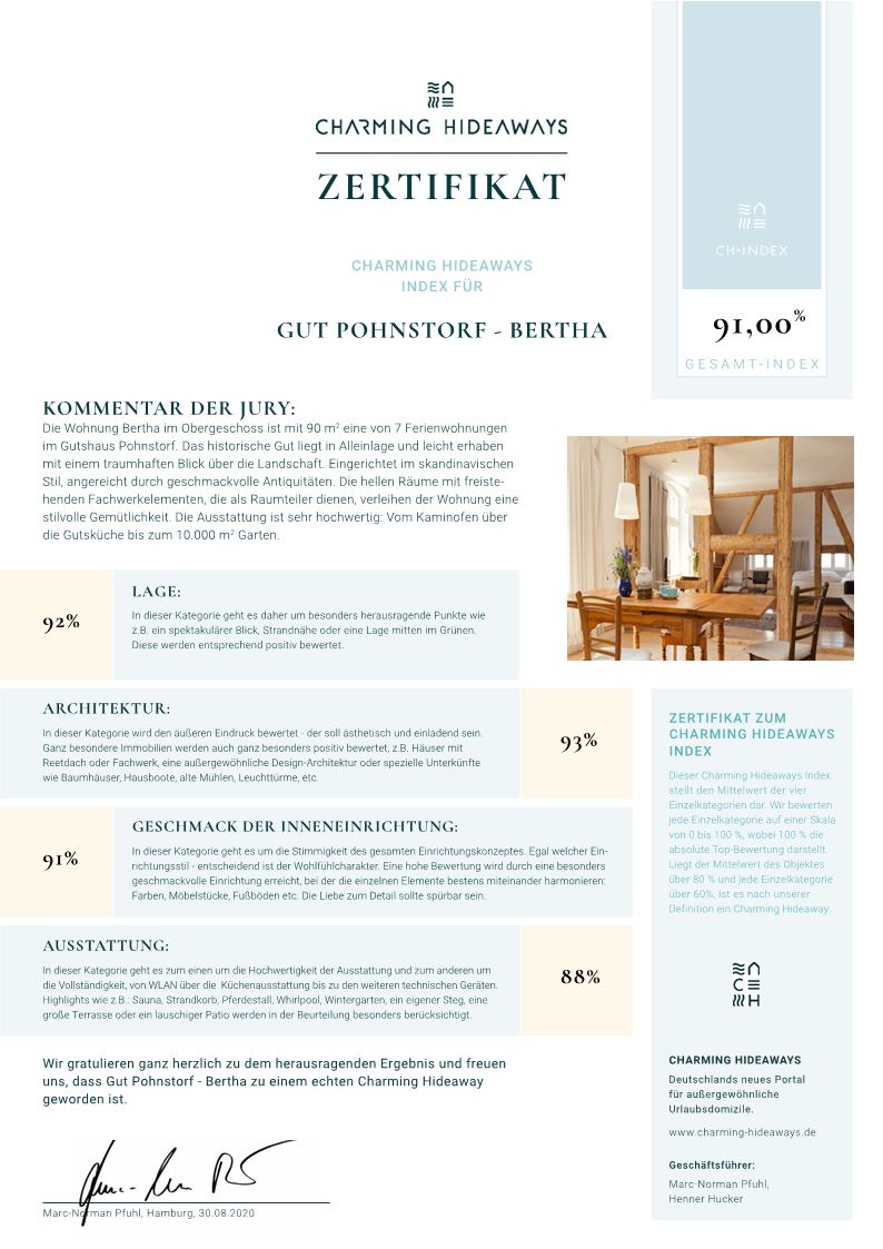 Was bedeutet dieser Index und wie bewertet Charming Hideaways die Objekte? Erfahren Sie mehr: