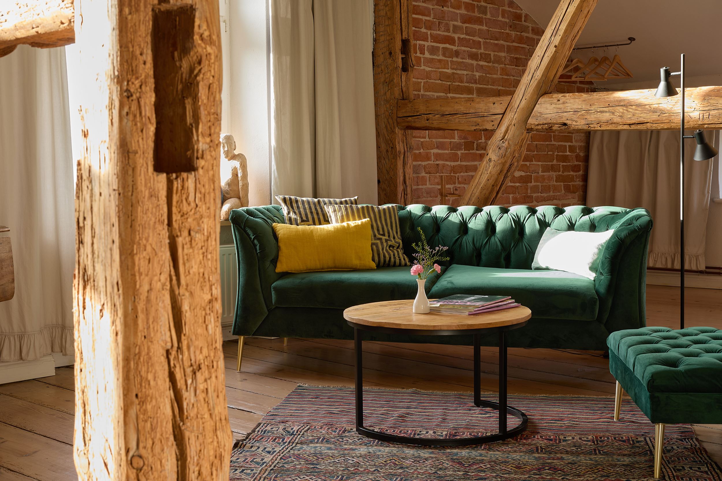 Die Wohnung Bertha im Obergeschoss ist mit 90qm eine von 7 Ferienwohnungen im Gutshaus Pohnstorf. Das historische Gut liegt in Alleinlage und leicht erhaben mit einem traumhaften Blick über die Landschaft. Eingerichtet im skandinavischen Stil, angereicht durch geschmackvolle Antiquitäten. Die hellen Räume mit freistehenden Fachwerkelementen, die als Raumteiler dienen, verleihen der Wohnung eine stilvolle Gemütlichkeit. Die Ausstattung ist sehr hochwertig: Vom Kaminofen über die Gutsküche bis zum 10.000qm Garten.