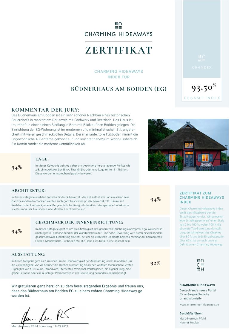 Das Haus war für uns ein Abenteuer, denn als wir in das Bieterverfahren gingen, wussten wir eigentlich noch nicht, was uns am Ende bei dem denkmalgeschützten Objekt erwartet. Außer uns traute sich niemand ran und später merkten wir auch weshalb. Ja, wir hatten eine Architektin, die uns Hoffnung gab, dass wir es schon irgendwie hinbekommen, aber die Probleme waren am Ende viel größer als angenommen. Die Auflagen waren die Quadratur des Kreises und das Haus vollkommen morsch. Als es dann doch endlich fertig war, haben wir erst gemerkt, wie wichtig den Bornern dieses Haus war, denn viele kannten es von früher. Und so war das schönste Kompliment: "Das haben Sie aber toll wieder hinbekommen." Nicht mal die, die es kannten, merkten, dass es neu war. Bedingt durch seine Vorgeschichte ist unser Haus eine sehr charmante Mischung aus alt und ganz modern geworden. Dabei haben wir an nichts gespart und das wird durch die vielen zufriedenen Stammgäste, die wir seit 2016 gewonnen haben, immer wieder aufs Schönste bestätigt. So schrieb uns ein Gast, der zum wiederholten Male dort war: "Kompliment, das Haus gehört zu den wenigen Orten, wo man Individualität ausleben kann, gepaart mit Stil und Perfektion - Sie haben wirklich an alles gedacht...."