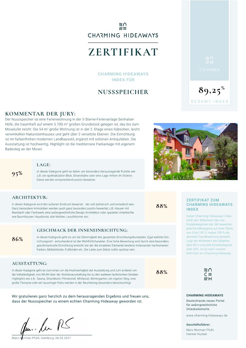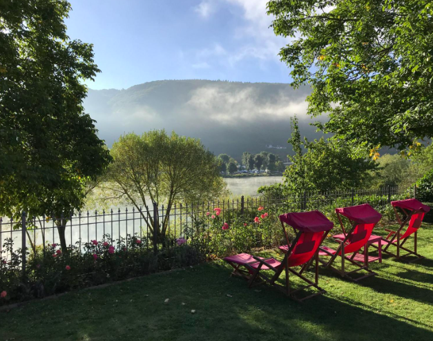 Design-Ferienhäuser auf einem mediterran anmutenden Anwesen mit traumhafter Lage direkt am Moselufer.