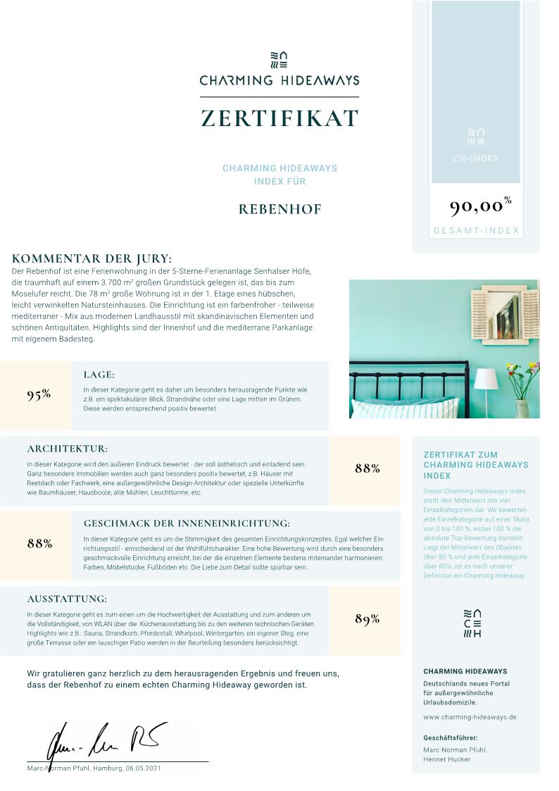 Design-Ferienhäuser auf einem mediterran anmutenden Anwesen mit traumhafter Lage direkt am Moselufer.