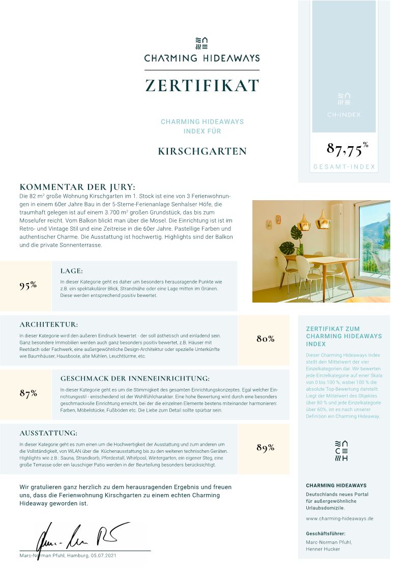Design-Ferienhäuser auf einem mediterran anmutenden Anwesen mit traumhafter Lage direkt am Moselufer.