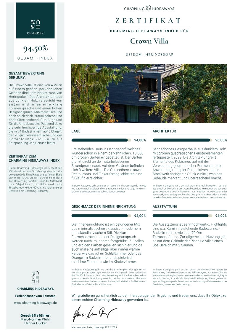 Es ist dank Andrea Breitengraser, Design und Konzept der Pineblue Villas, gelungen, einen Villenpark aus dem 19. Jahrhundert zu einem Hideaway umzuwandeln, das es so nicht mehr auf Usedom gibt. Seit Anfang diesen Jahres befinden sich im Park nun 3 moderne, freistehende Ferienhäuser und 7 Ferienwohnungen in der alten Villa von 1896. Dank Smartkeys für die Türen, voll ausgestattete Küchen, einem Salon, einer großen Gesellschaftsküche sowie einem Spa mit zwei Saunen, sind die Pineblue Villas ein idealer Rückzugsort für all diejenigen, die den Alltag hinter sich lassen wollen und den Luxus von Privatheit dem Trubel eines 5 Sterne Hotels vorziehen.