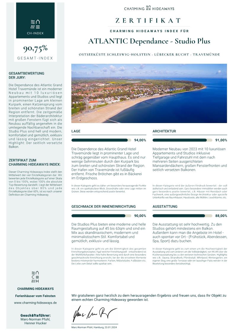 Die ATLANTIC Dependance ist in unserem Produktportfolio etwas Neues, Schönes und Einzigartiges. Wir freuen uns sehr, damit die Möglichkeit zu haben, Gästen die gerne etwas länger bei uns bleiben möchten und/oder etwas mehr Platz benötigen, eine attraktive Alternative zum Hotelprodukt zu bieten. Der ideale Ort für Freunde, Familien, Paare oder auch Alleinreisendende, die Abgeschiedenheit wünschen, aber auch die Nähe zu einem Hotel wertschätzen.