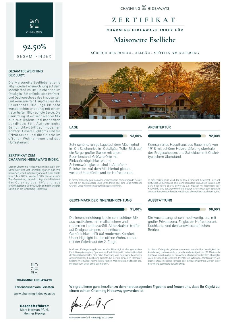 Wir sind weiterhin überzeugt, dass wir mit unserem Herzensprojekt „Mächlerhof“ und all seinen individuellen Urlaubsunterkünften der Philosophie eines Charming Hideaways gerecht werden können.