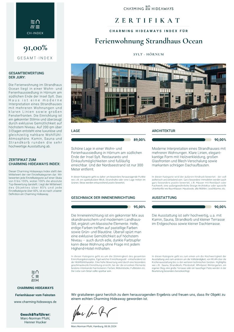 Modernes Strandhaus, 200 qm Wohnfläche für max. 8 Personen – auf 3 Etagen in Top-Lage und dem gewohnt stilvollen und besonderen Ambiente von Höpershof Sylt. Zeitgemäß, erfrischend, hell und sehr komfortabel. Sauna und Kamin.