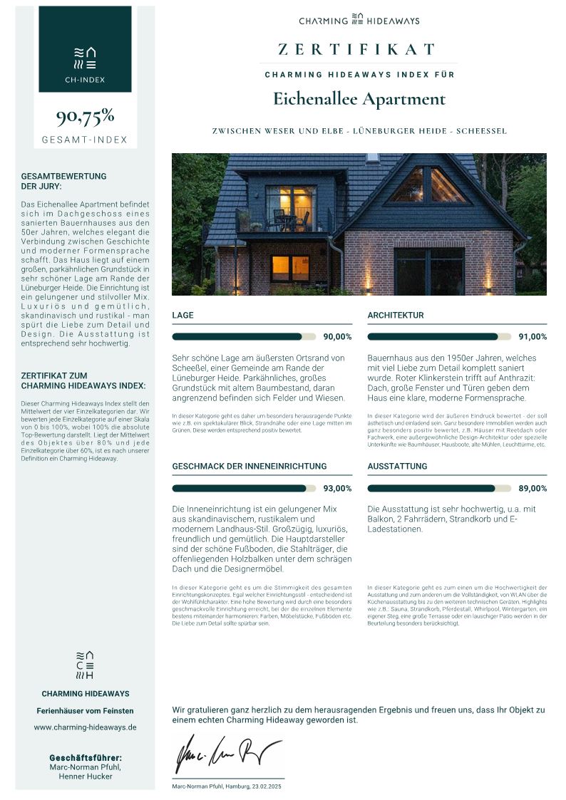 Wir haben keinen Meerblick und liegen auch nicht hoch auf dem Berg aber wer aus welchen Gründen auch immer irgendwo zwischen Bremen und Hamburg übernachten möchte und einen Rückzugsort sucht, ist hier bestens aufgehoben. Ein charming hideaway, wo man es vielleicht nicht erwartet. Unsere Gäste lieben es!