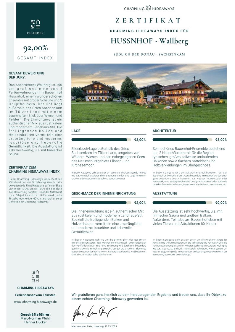 Wer Besonderes mag und gutes Design schätzt, wird unseren Hof im Tölzer Land lieben. Das Chalet-Apartment Wallberg mit privater Sauna ist das perfekte Hideaway für Anspruchsvolle und mit allem ausgestattet, was man sich nur wünscht.