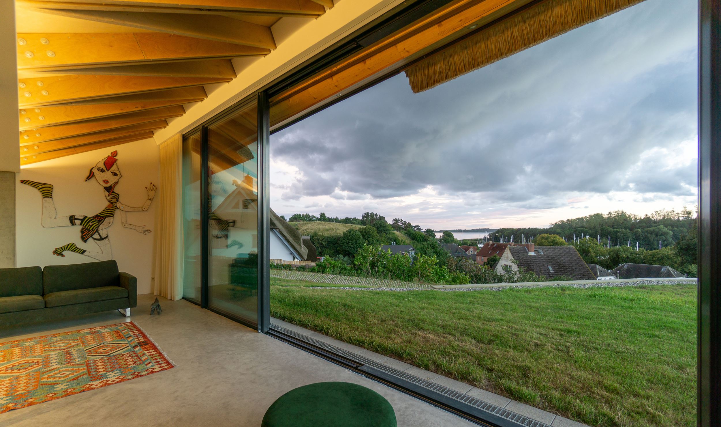 Das Haus ist ein Designjuwel, das Natur, Architektur und Wohnkomfort atemberaubend verknüpft. Die Reetdach- und Holzfassade verschmelzen mit dem umgebenden Landschaftsbild, während die Innenräume durch moderne Einrichtung und Kunst begeistern. Ideal für Familien, die Abenteuer, Stil und Weitblick in strandnaher Lage suchen.