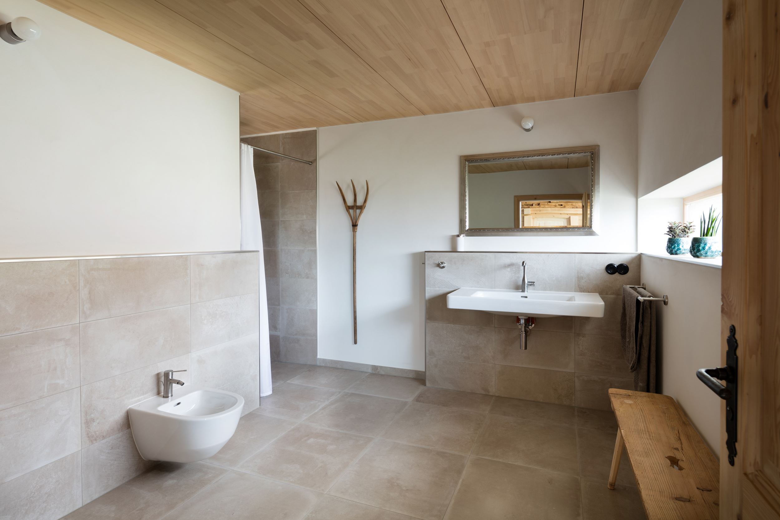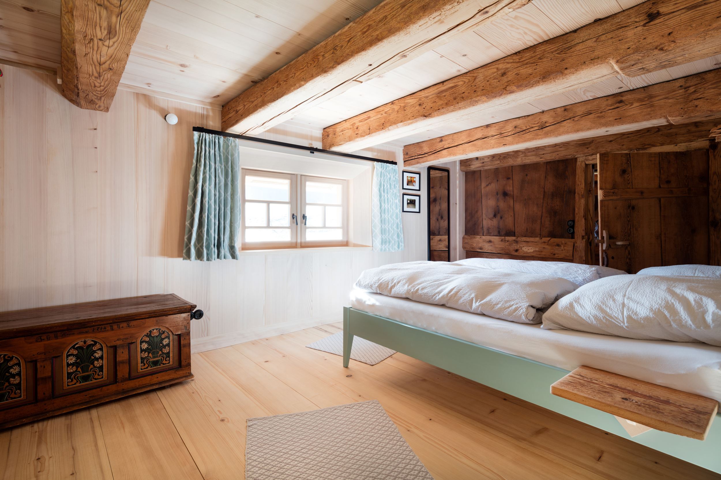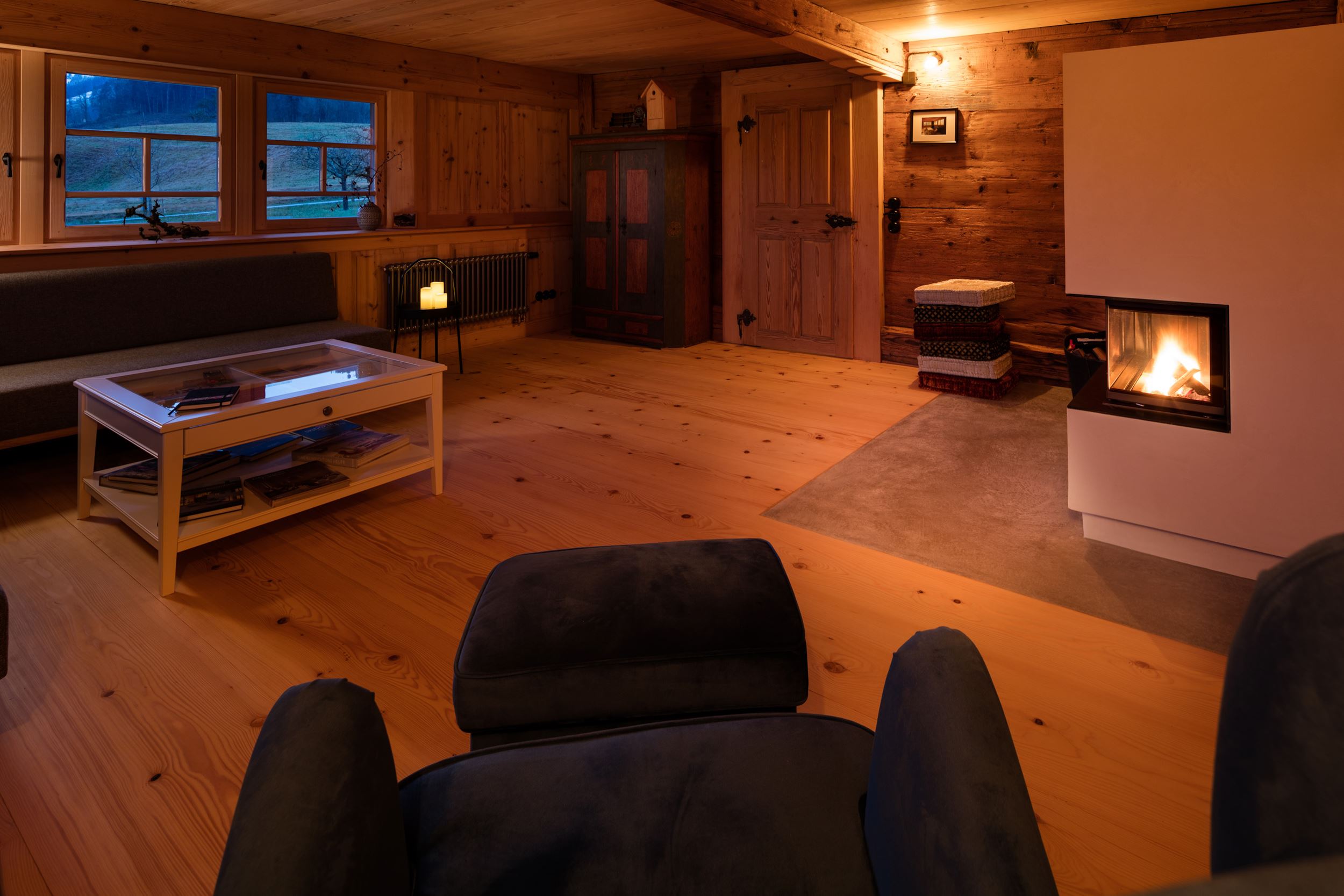 Die gesamte Einrichtung des nun sanierten Hofes ist daher bewusst schlicht, aber qualitativ hochwertig und dabei individuell angefertigt. Auch die Beleuchtung ist zurückhaltend und am Abend suggerieren unterschiedlichste Schattenwürfe fast schon lebendige Strukturen. Dennoch wird wohl niemand den Hof als karg erleben. Der Luxus liegt in der Großzügigkeit des Außenbereiches, den Innenräumen, den vielen Rückzugsmöglichkeiten und dem Erleben des Ursprünglichen, im Zusammentreffen von historischer Bausubstanz und moderner Inneneinrichtung.