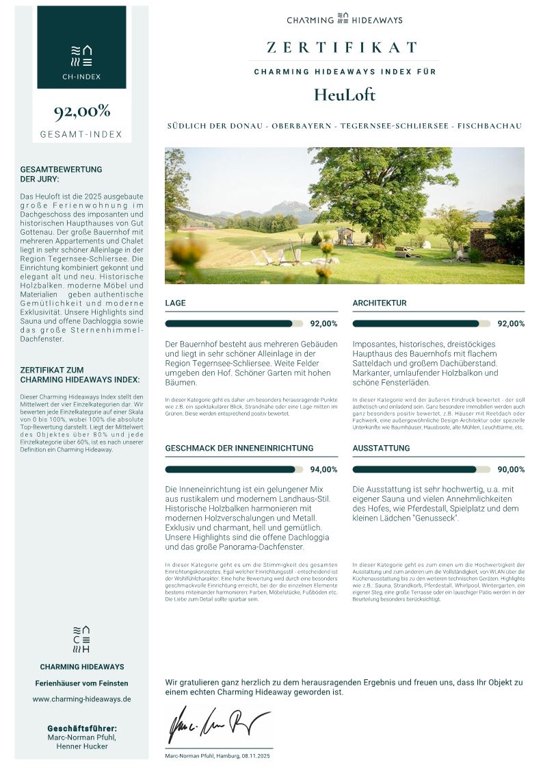 Urlaub auf dem Bauernhof gibt’s öfter. So wie hier aber nirgends. Bei uns, Regina und Korbinian, verbringst du deine freien Tage auf dem Hof Gottenau - in kompletter Alleinlage und abseits der Straßen - wie in einer Romanvorlage. Auf einem Bio-Bauernhof im Vollerwerb, mit einzigartiger und unverstellter Bergsicht, umgeben von 20 Hektar Land und - last but not least - mit herzlichen Gastgebern.