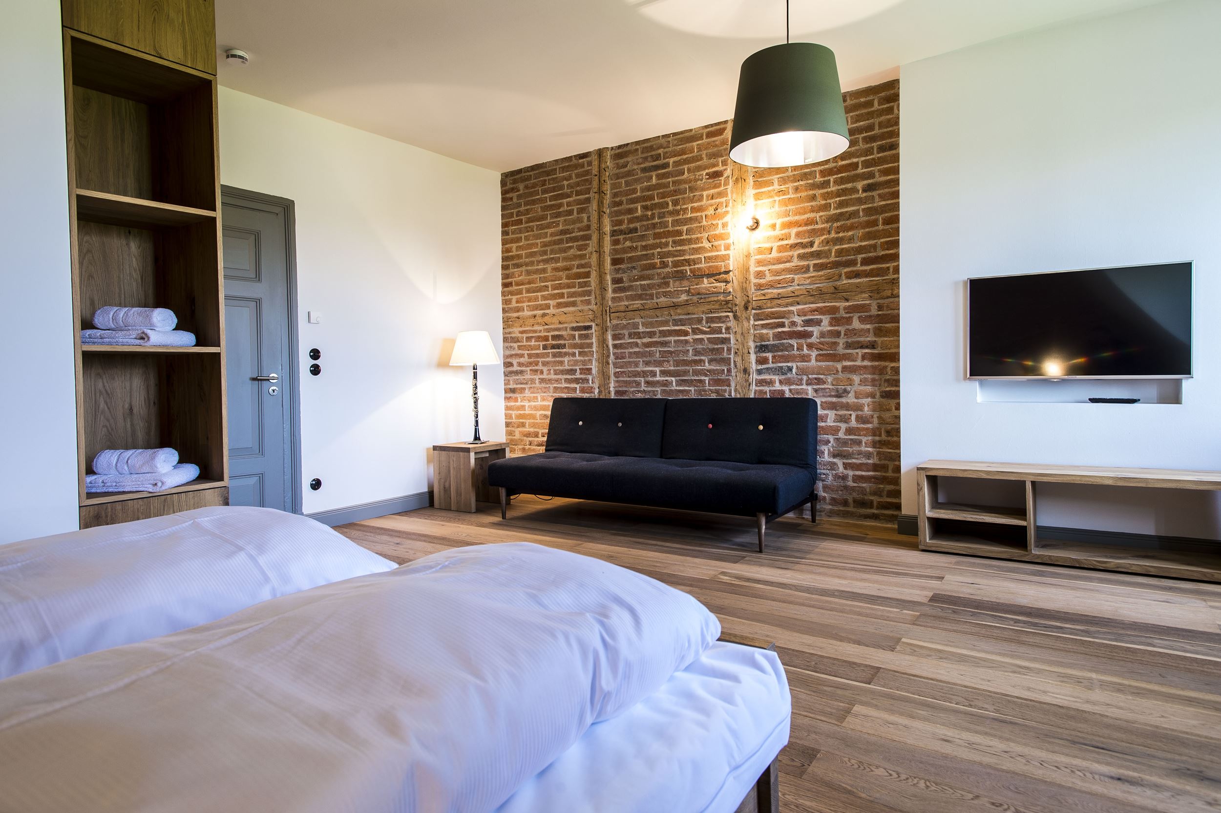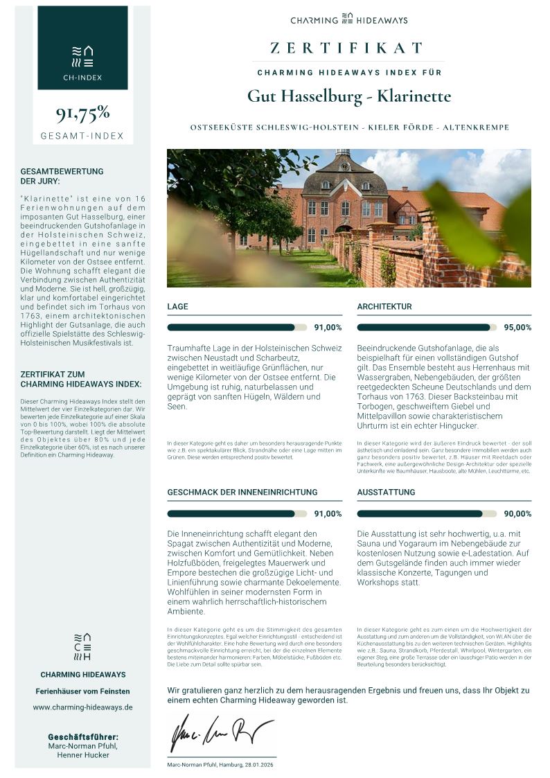Das Torhaus wurde einst 1763 erbaut und unter dem Denkmalschutz komplett renoviert und erhalten. Alles auf dem Gut fühlt sich historisch, alt aber dennoch modern an. Die Innenausstattung ist geprägt von modernen und hochwertigen Geräten.