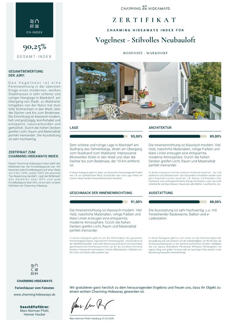 Ich sehe das Vogelnest als Charming Hideaway, weil es kein austauschbares Ferienobjekt ist. Es ist persönlich kuratiert, geprägt von gestalterischer Haltung und geschaffen für Gäste, die Qualität, Ruhe und Substanz schätzen. Ein Ort für Menschen, die nicht einfach Urlaub machen, sondern bewusst wohnen möchten – auf Zeit.