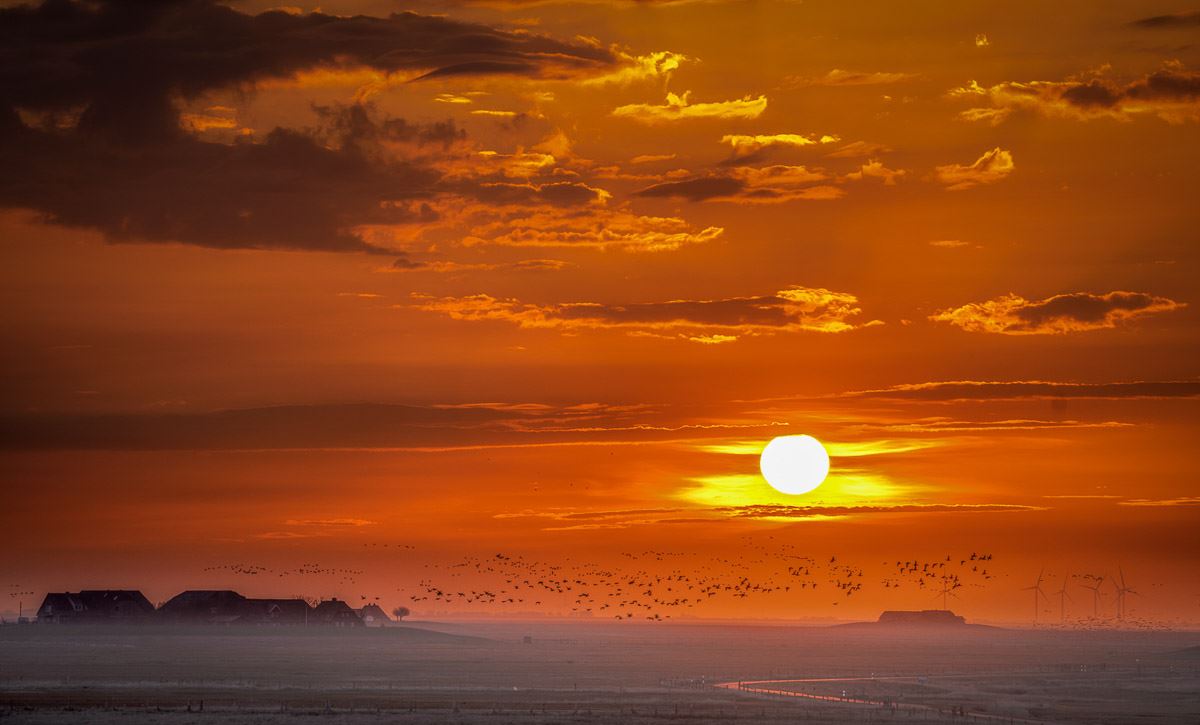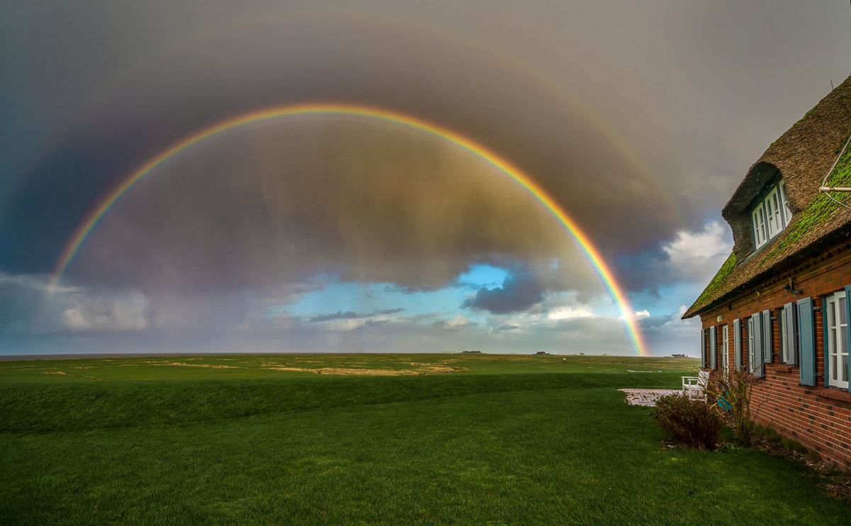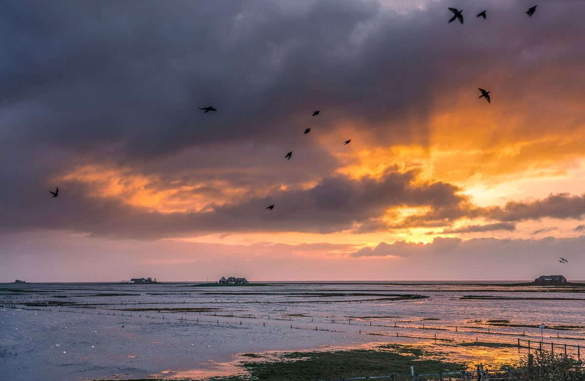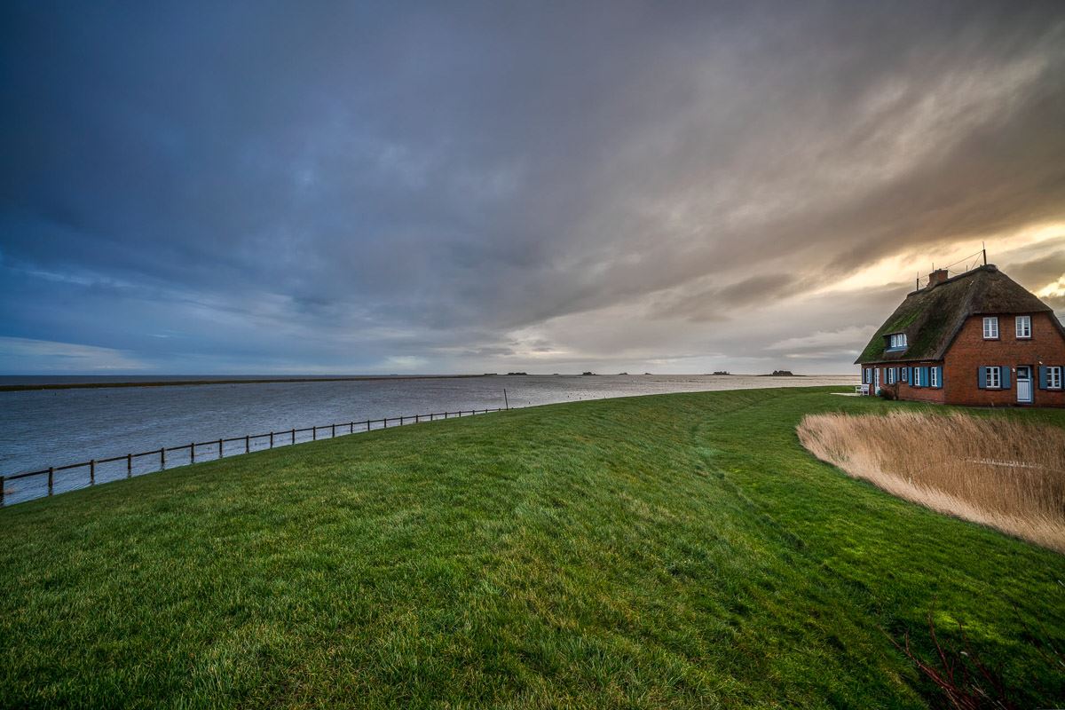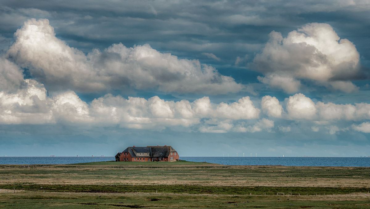 Die Hallig Langeneß liegt im Wattenmeer der nordfriesischen Nordsee. Die Häuser stehen auf Warften (5m hohe Erdhügel). Bei hohen Sturmfluten kann das Land der Hallig überflutet werden, während die Häuser dann sicher auf den Warften geschützt sind.