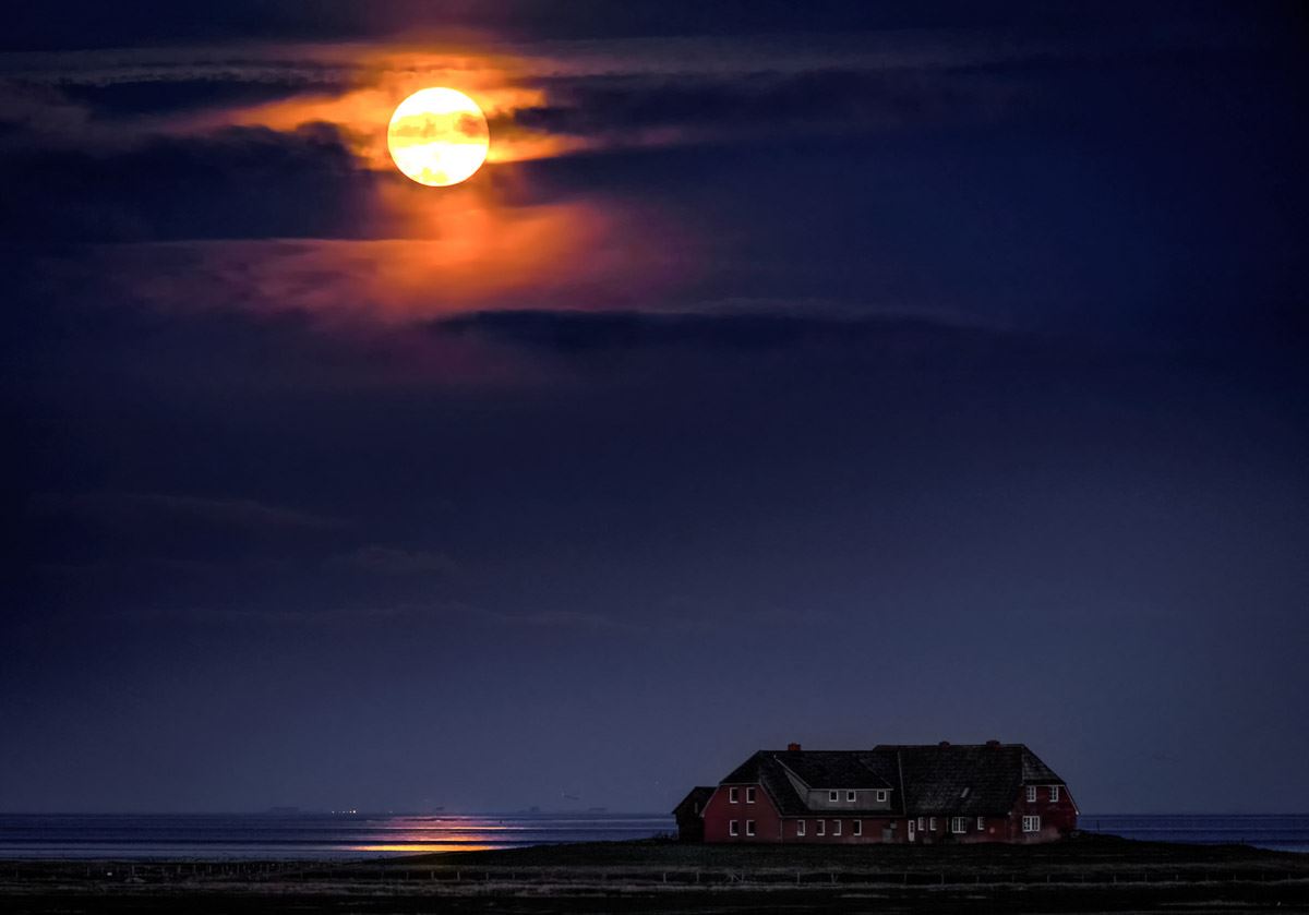 Einzigartig und spektakulär: Alleinlage auf einem 5.000 qm großen Grundstück, mitten im Wattenmeer, auf einer Warft im Zentrum der Hallig Langeneß, umgeben von Ruhe, Himmel und Nordsee. Meerblick aus jedem Fenster.